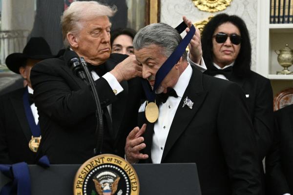 特朗普评价西尔维斯特·史泰龙:称这位友人是"非凡的""耀眼的"人物,"真正的银幕巨星之一"与"传奇典范"。